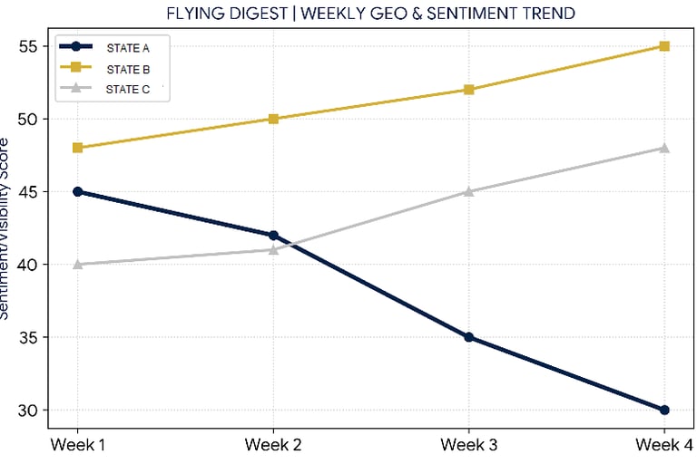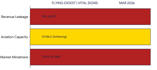 Flying Digest provides the "War Room" intelligence required to protect your state’s economy. We bridge the gap between raw aviation data and executive-level decision-making by converting market noise into Quantified Revenue Leakage.